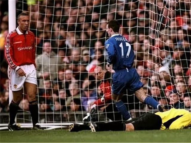 之后的日子,杰弗斯以肉眼可见的速度成长。1998—99赛季,18岁的他在英超联赛缴纳出了15场6粒进球的数据单,成为队内二号射手。在不容有失的默西塞德德比战,他初生牛犊不怕虎,攻破了利物浦球门。